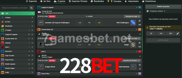 O 228bet oferece uma grande seleção de opções de apostas em e-sports com probabilidades competitivas